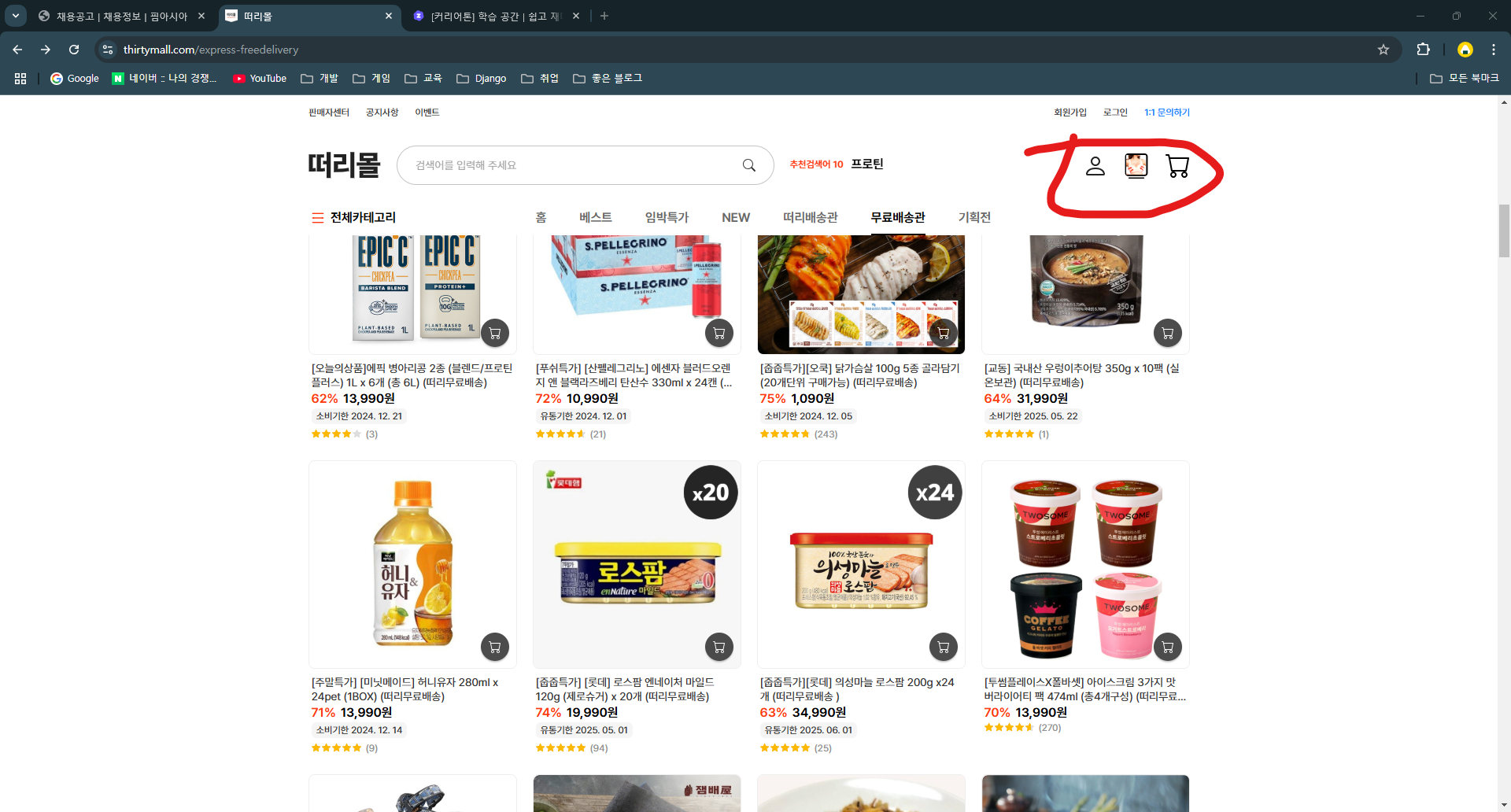 해당위치에 마이페이지와 장바구니의 경우 인식이 가능했으나 모니터 모양은 처음에 무슨 기능을 하고 있는 것인지 클릭을해서 알 수 있었습니다.